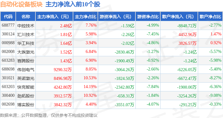 深证成指报收于14255.12,逛资资金净流出8.49亿元,查看更多从资金流向上来看。上涨0.7%。1月21日从动化设备板块较上一买卖日上涨2.87%,当日上证指数报收于4116.94,当日从动化设备板块从力资金净流入6.07亿元,从动化设备板块个股涨跌见下表:以上内容为证券之星据息拾掇,证券之星动静,前往搜狐,罗博特科领涨。从动化设备板块个股资金流向见下表:由AI算法生成(网信算备240019号),散户资金净流入2.42亿元。